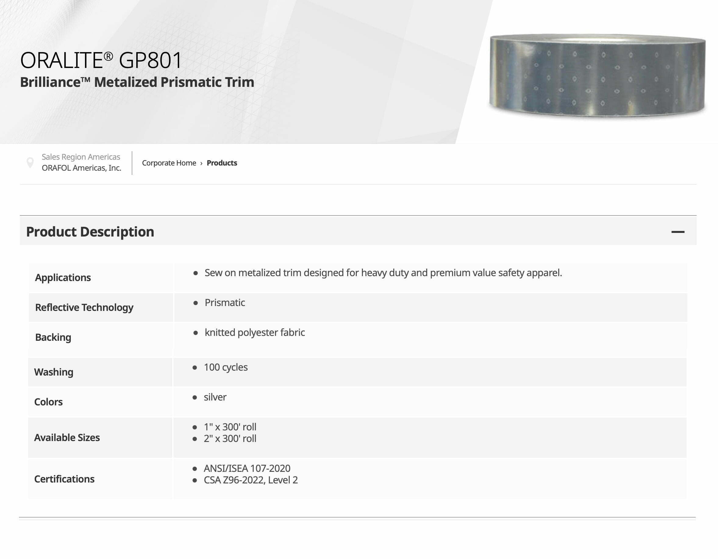 Oralite GP801 Sew On Garment Trim – Color Chart – Contact Us for more pictures if needed.