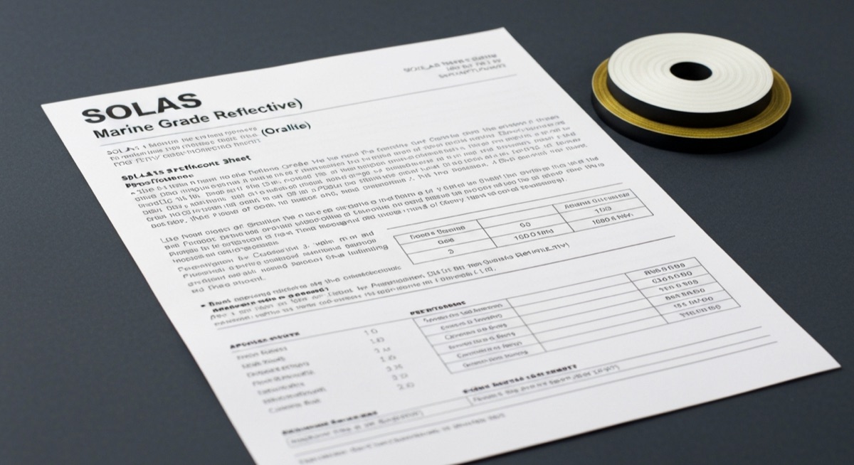 SOLAS (safety of life at sea) is a coast guard approved, marine grade retro reflective tape that is designed for off shore applications on ships, boats, and commercial vessels. SOLAS comes only in a white (grey/silver) color. It is grey in the daytime, and very bright white when reflecting. SOLAS film is not for signs, therefore it is not typed by ASTM. Instead, it is governed by International Maritime Organization (IMO), the Coast Guard, and Homeland Security. SOLAS by Oralite comes in three types. 1403 Adhesive for hard surfaces, 1403 Sew On for Garments, and 1404 Flexible for Zodiacs, Survival Suits, Etc.. A spec sheet for Oralite 1403 and 1404 is below.